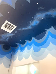 We were given total freedom in this nine year old's bedroom. They wanted something bright and colorful that she wouldn't outgrow, and to incorporate the jungle. There was also a fun loft that we created a dreamy milky way!